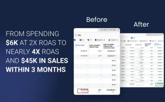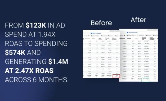 This client was previously running ads but their message wasn’t cutting through the clutter. They needed a fresh approach to connect with their audience on a deeper level. We created ads that showcased the benefits of their templates while fine-tuning their message. We also increased their AOV and achieved a 4.2X ROAS